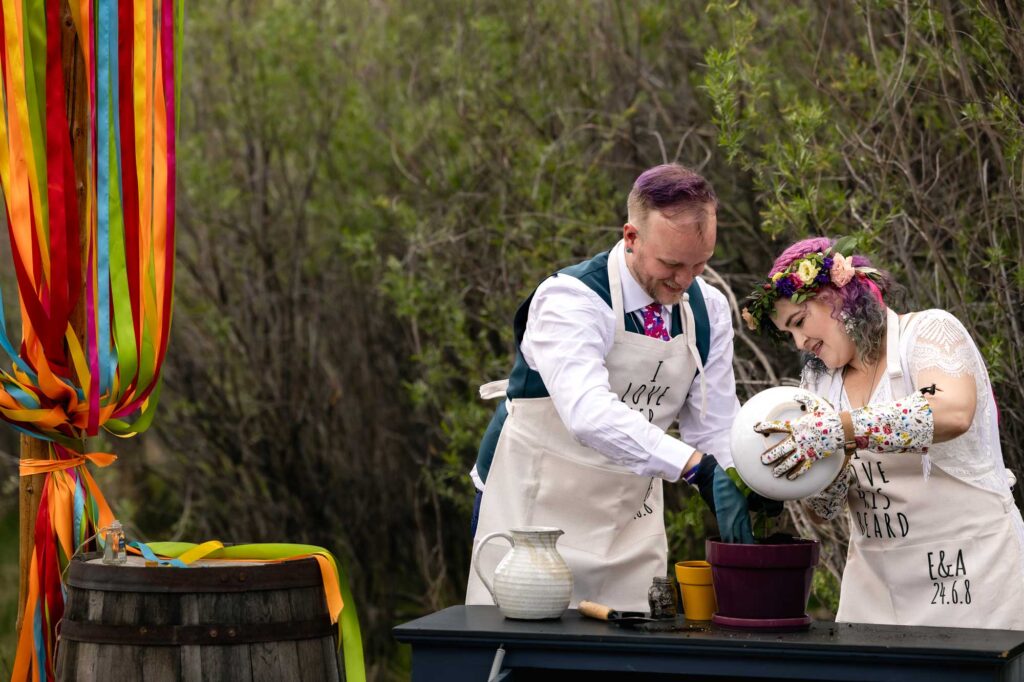 This was such a special ceremony with an incredible backdrop. The bride and groom decided to do a unity plant to mark the start of their new journey – as the plant grows, so does their relationship. They also had designated guests be shot and pickle distributors!! They loved their pickles!! They also allowed guests to stand up and give them best wishes before their first kiss.